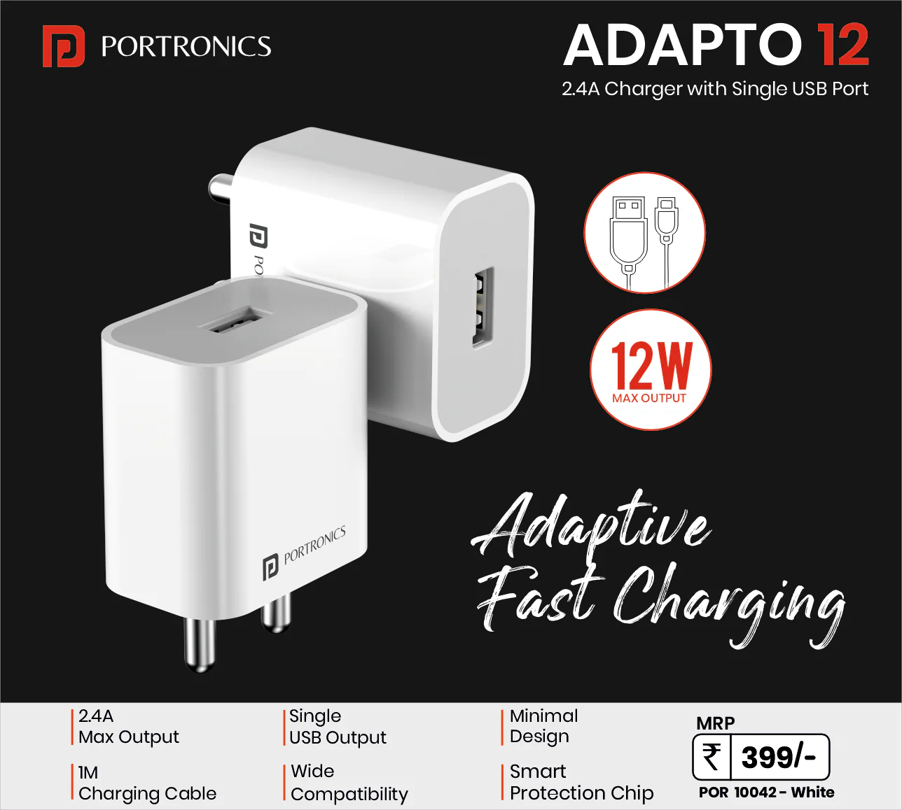 - Quick Charging Solution: With an impressive 12-watt output, this Made In India mobile charging adapter ensures your devices receive a speedy charge, keeping you on the move.