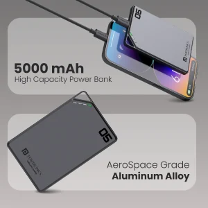 - Premium Metallic Finish: Crafted from durable Aerospace Grade Aluminum Alloy , the compact power bank withstands the rigours of daily use. In addition, Its sleek and premium finish adds a touch of elegance.