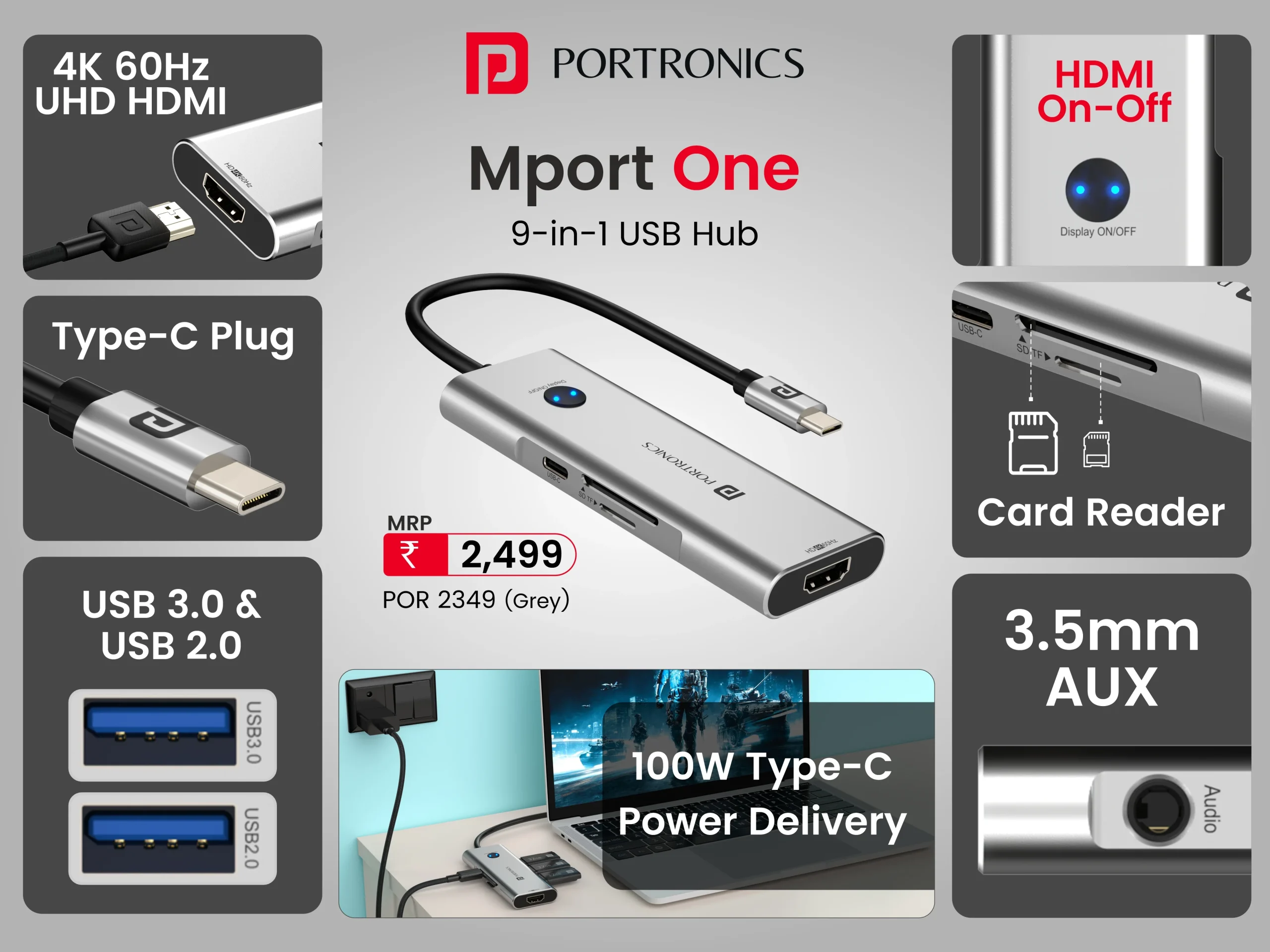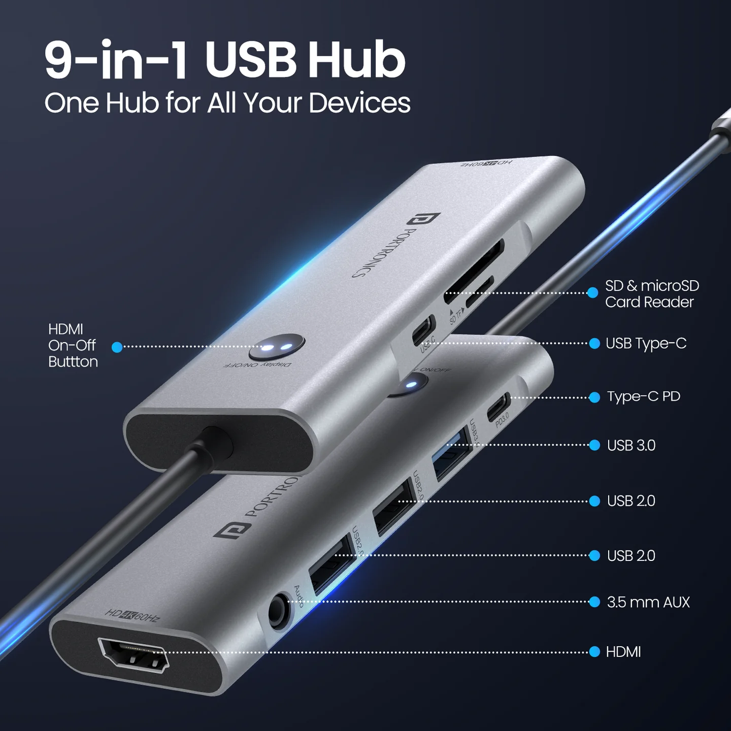 - 9-in-1 Connectivity: The Portronics Mport One consolidates 9 ports for seamless device integration and offers hassle-free connection management in one hub.