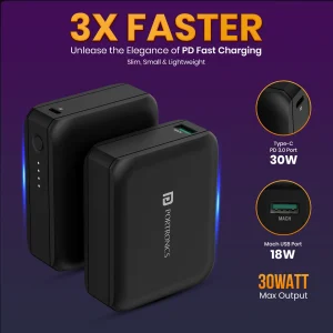 - 30 Watt PD High-Speed Charging: Equipped with a 10,000 mAh battery, this power bank delivers an impressive output of 30 watts at max, ensuring your devices charge faster than ever