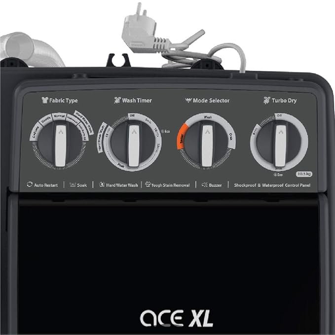 Whirlpool 10.5 Kg Ace XL Semi-Automatic Top Loading Washing Machine (Ace XL 10.5, Grey, In-Built Heater, 3D Scrub Technology)